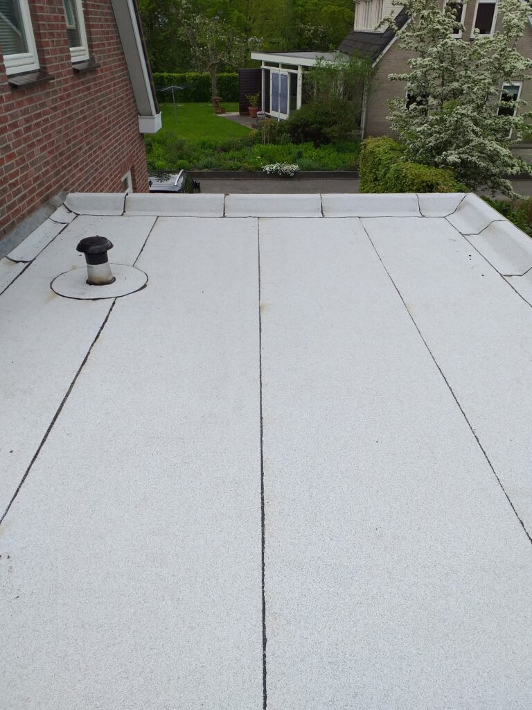 Bij oude dakbedekking wordt een nieuwe laag aangebracht. Dit kan met verschillende materialen, zoals kunststof of wit bitumen. - Coaten van bestaande dakbedekking.