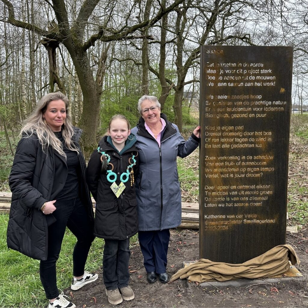 Onze kinderklimaatburgemeester Ilse Zuiderveld onthulde donderdag 21 maart samen met Wethouder Maria le Roy een paneel met daarop een gedicht van gemeentedichter Katherine van der Velde. ✒️ Dit paneel staat bij het asielzoekerscentrum in Drachten.